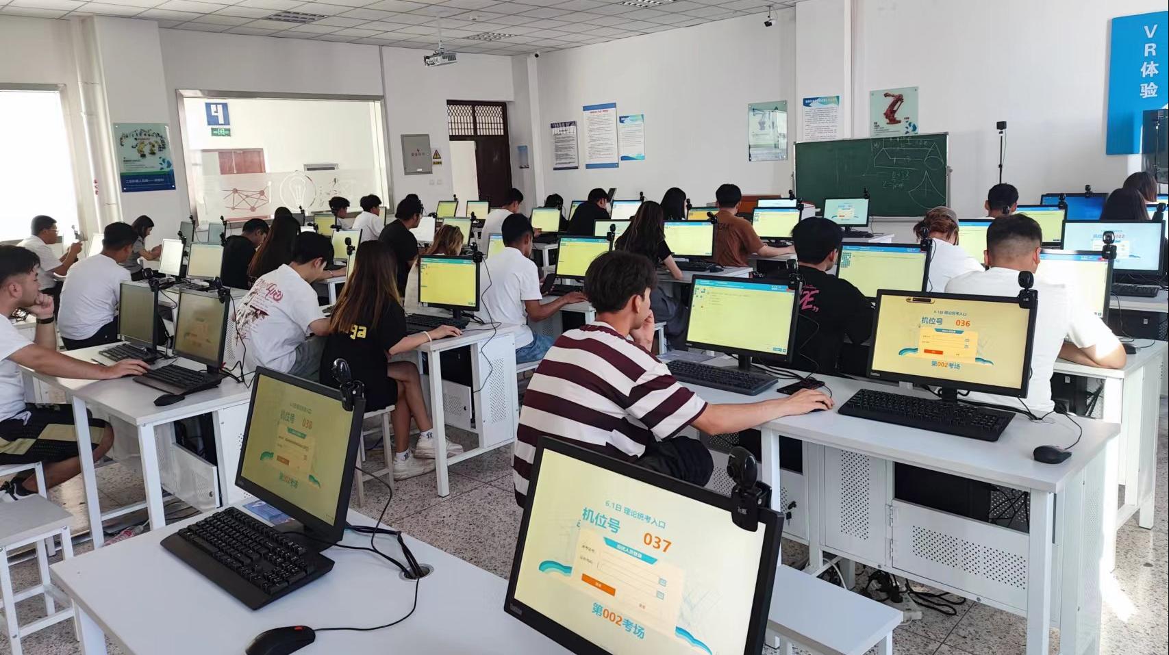 考核分为理论考核和实操考核,理论考核采用全国统一的机考联网系统进行考试,实操考核依托我院的工业机器人操作与运维考核实训装置完成。经过前期指导教师全面的培训以及学生刻苦地训练,考核过程中,同学们冷静思考、熟练操作,考评人员客观公正,严谨认真,考评工作顺利结束。