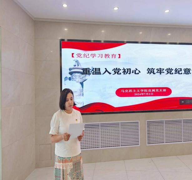 为热烈庆祝中国共产党成立103周年,贯彻落实习近平总书记关于党纪学习教育重要指示精神,7月1日上午,马克思主义学院直属党支部在新疆交通思想政治教育基地开展了“重温入党初心 筑牢党纪意识”主题党日活动。