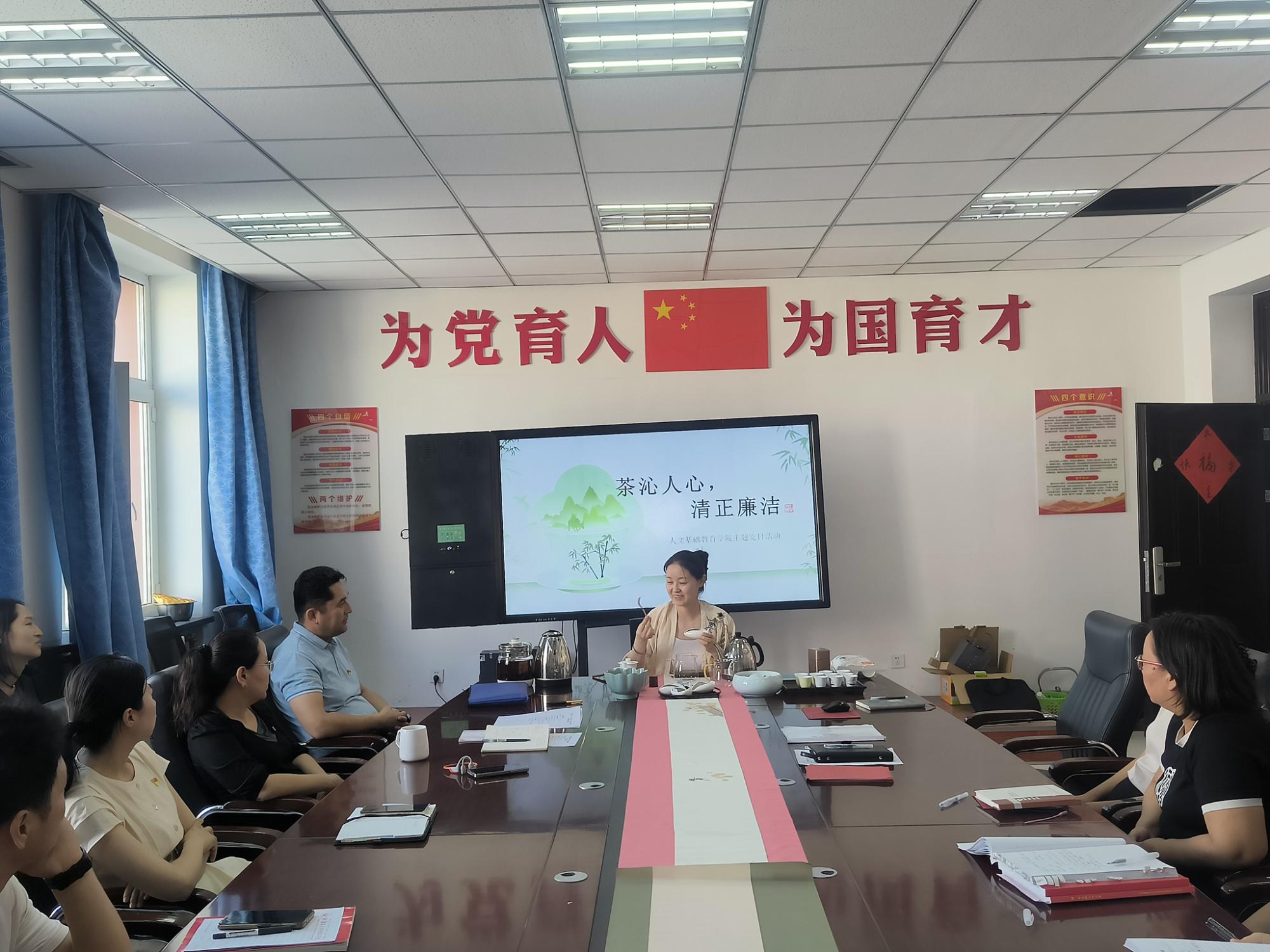 在全体党员干部集体过“政治生日”后,党员教师赵晓雪以“茶沁人心,清正廉洁”为主题为全体党员干部讲解展示茶文化,同时党员干部撰写廉政家书,让家书唤起广大党员干部对良好家风的珍视,在家人、亲人之间共话清廉,让清风正气在亲情中凝聚,不断营造风清气正的家庭氛围、社会氛围,弘扬廉洁的价值理念。