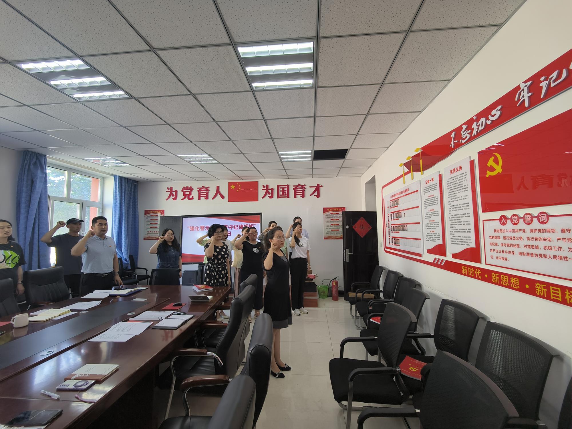 全体党员干部在党总支书记叶来·叶尔扎提同志的带领下重温入党誓词。