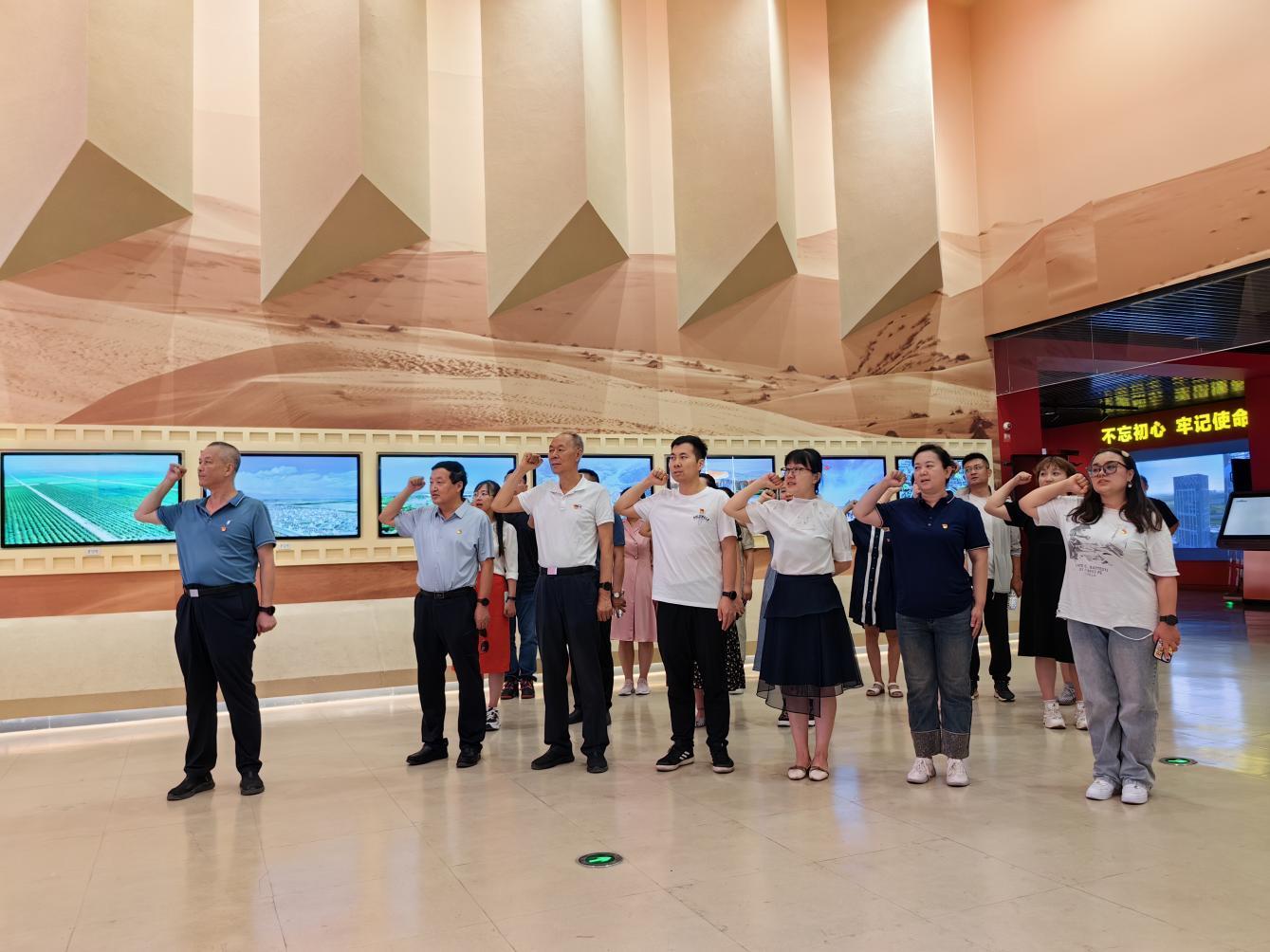 军垦博物馆作为记录和展示中国军垦历史与文化的重要场所,其丰富的展览内容和深厚的文化底蕴吸引了参观团的目光。在专业讲解员的带领下,参观团成员们依次参观了反映不同历史时期军垦人员艰苦创业、无私奉献的展区,每一件展品都讲述着一个个鲜活的故事,让在场的每一位参观者深刻感受到军垦精神的时代价值和深远影响。参观结束时,为庆祝中国共产党成立103周年,全体党员在党旗下重温入党誓词。