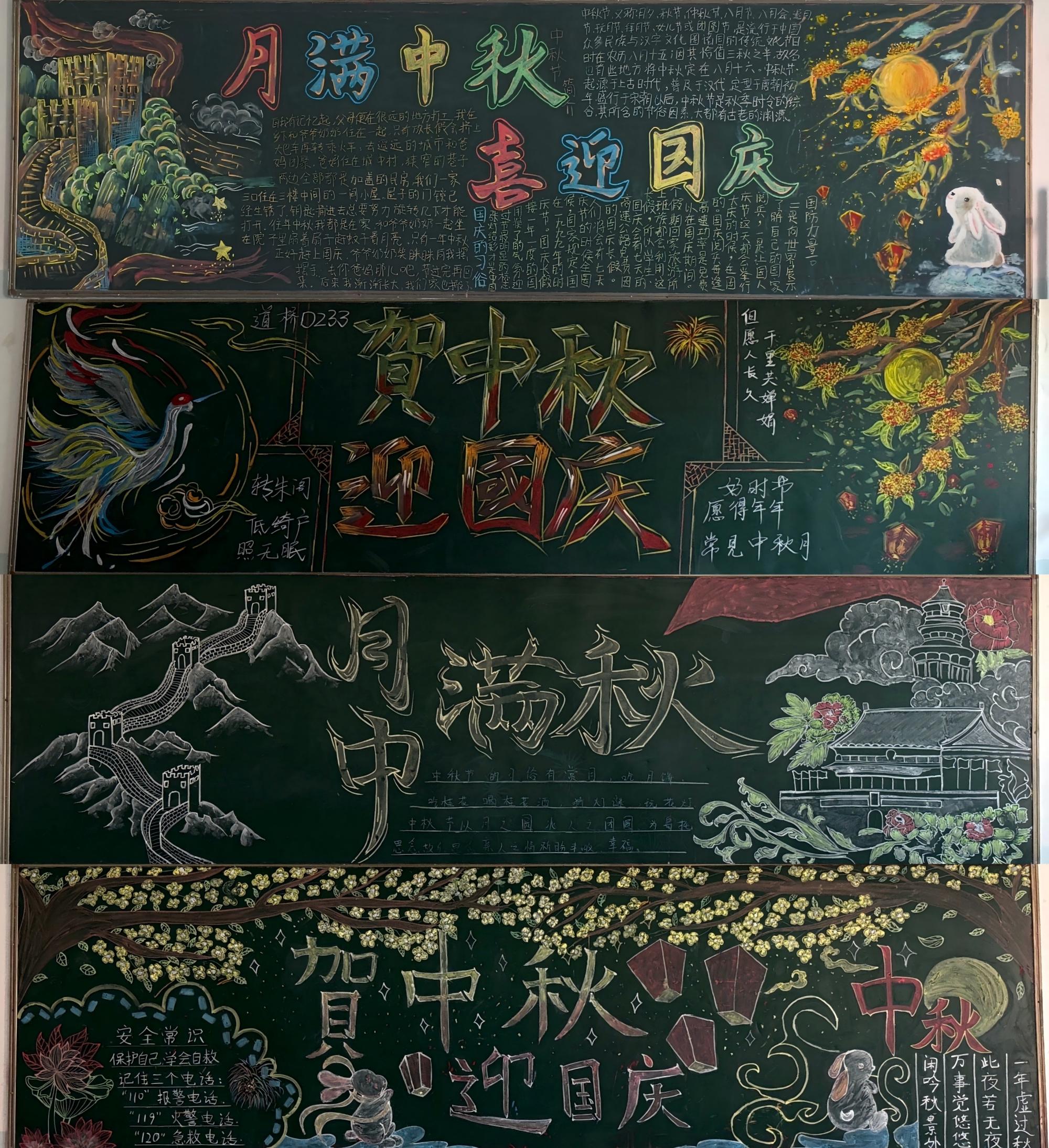 铁道D233班的赵佳佳同学说:“在绘制文化墙的过程中,我们相互协作、共同创作,增进了彼此之间的友谊和团结,同时也让我们更加深入地了解了中秋和国庆的文化内涵,激发了我们的爱国热情和民族自豪感。”