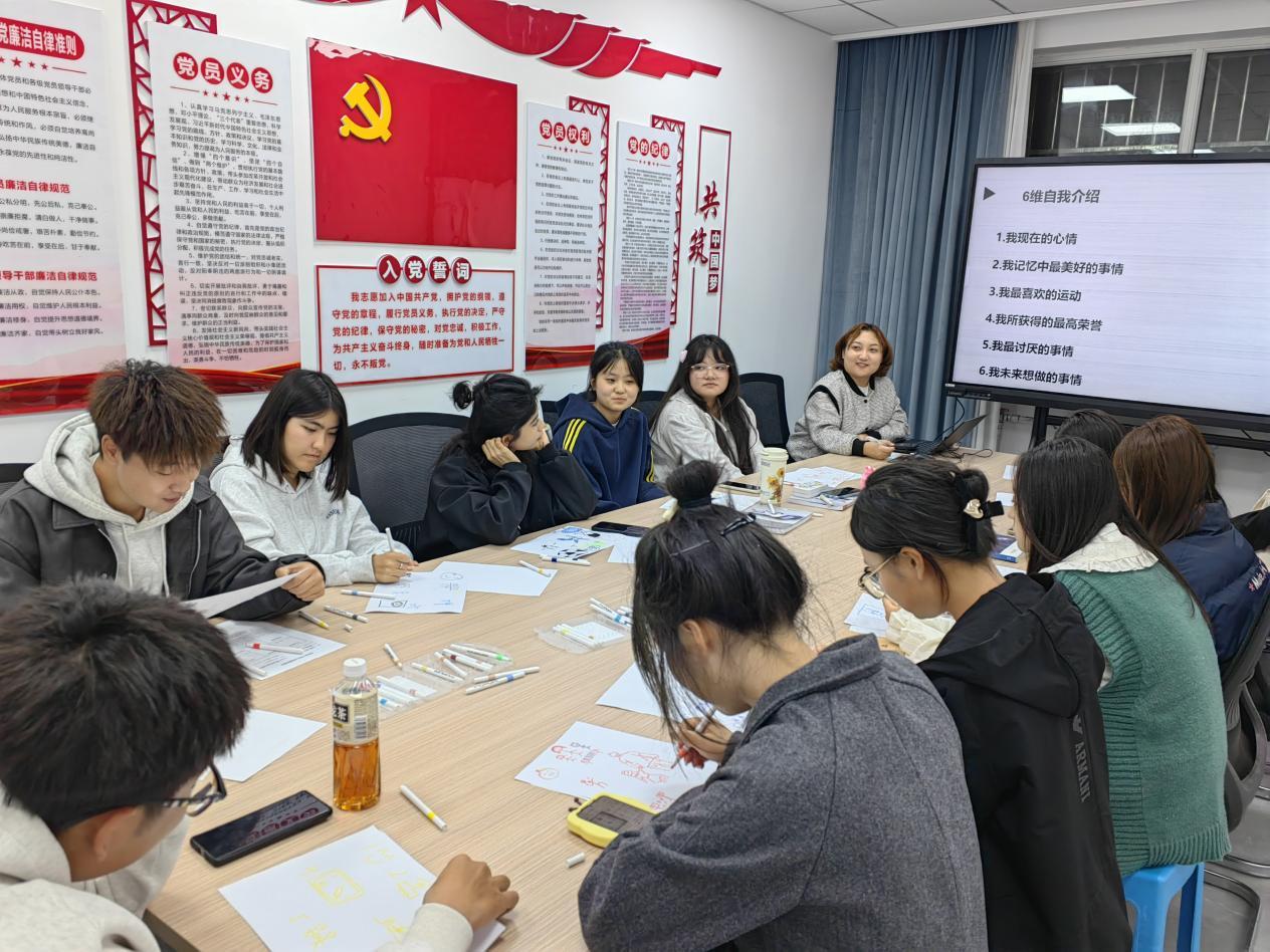 活动伊始,杨娟老师用别开生面的六维自我介绍成功吸引了同学们的目光,打破了初入社团的陌生感。随后每位成员通过绘画的方式从6个维度展现自己独特的个性和今后的奋斗目标,成员们认真聆听,不时爆发出阵阵掌声,在轻松愉快的氛围中逐渐记住了彼此的名字和特点。