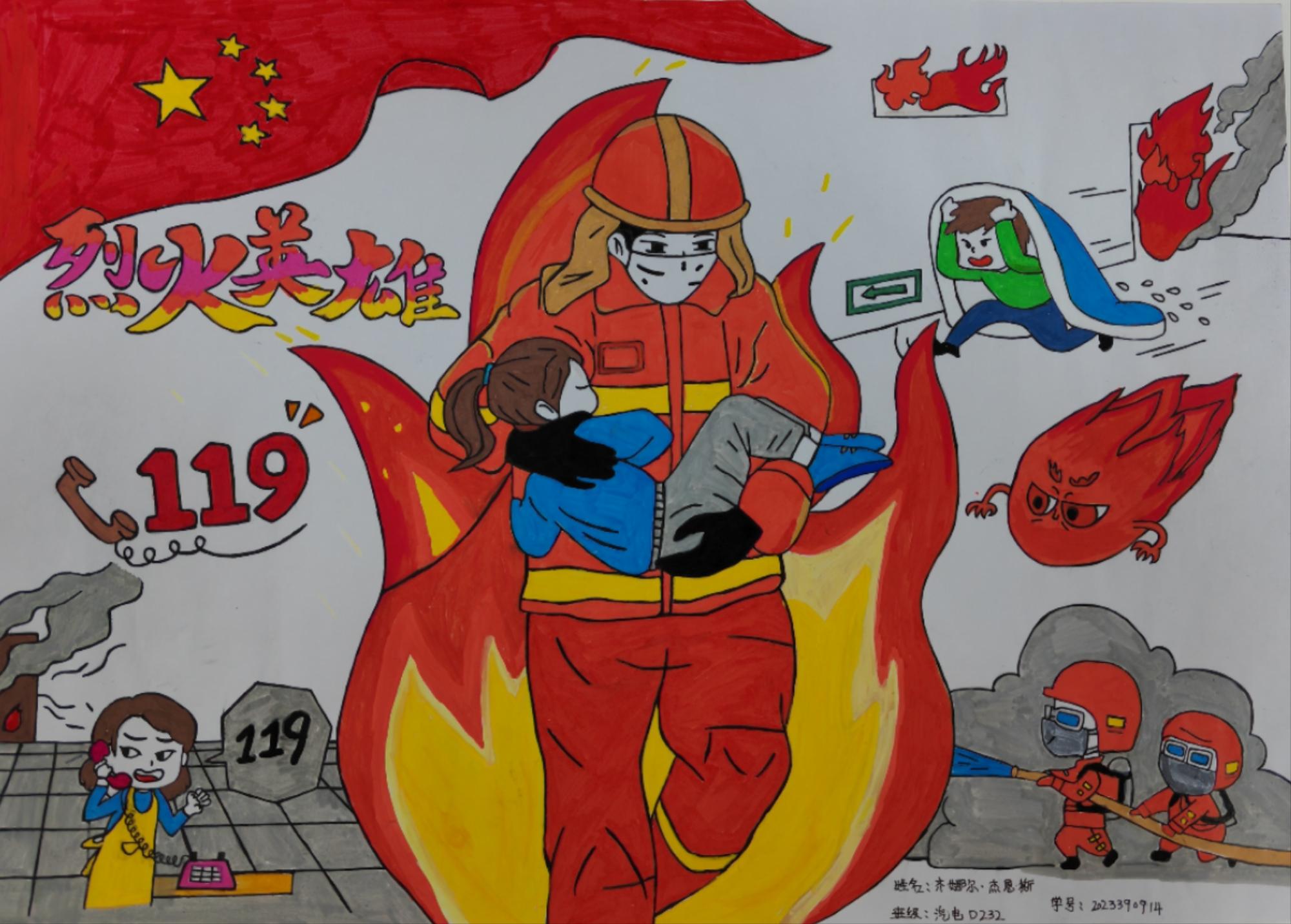 手抄报涵盖了消防安全知识、自护自救方法、防火警示标记等内容,同学们的作品生动形象、寓教于乐,成为分院宣传消防安全知识的一道亮丽风景。本次活动共收到作品100余件,经认真评选,汽电D232齐娜尔·杰恩斯荣获一等奖、能源G231孜拉莱·赛麦提、改装D231许彤彤荣获二等奖、汽销D234夏尔巴提·加勒斯、新能源D231马文雪、汽电D232祖拉娅提·阿布都克热木荣获三等奖。