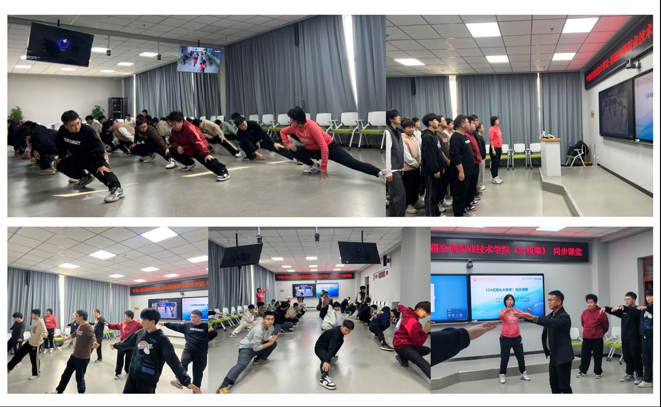 11月 18 日,新疆交通职业技术学院与河南平顶山职业技术学院携手开展了一堂太极拳实践课。课程以中国传统武术——太极拳为核心内容,横跨3000余公里为两校学生呈现了一场传承武学文化、精习太极拳的实践交流。新疆太极拳协会副会长李松兵,平顶山市太极拳协会会长杨建辉,两院教务处及分院领导、课程团队成员参加仪式。