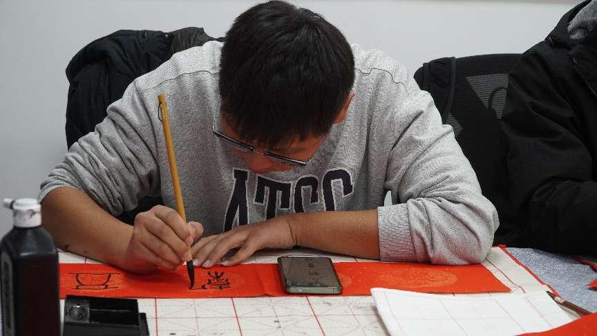 活动开始,赵晓雪老师为大家讲解冬至的来历与文化内涵,“冬至如大年,人间小团圆”这句俗语也体现出人们对冬至的重视。随后,同学们在老师的指导下学习如何让执笔,将新春祝福融入笔端,专注于福字书写。红红的福字,承载着大家对美好生活的期许,象征着新年福气满满。