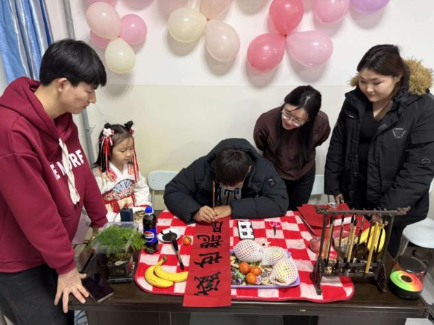 12 月 20 日下午,马克思主义学院四楼洋溢着节日的欢乐氛围,由红色宣讲社团“薪火逐梦”主办,阡陌文化社团与国风社团共同参与的“情暖冬至 喜迎元旦”文化共赏活动在此精彩上演。此次活动旨在弘扬中华文化,丰富校园生活,提升学生精神文化素养。