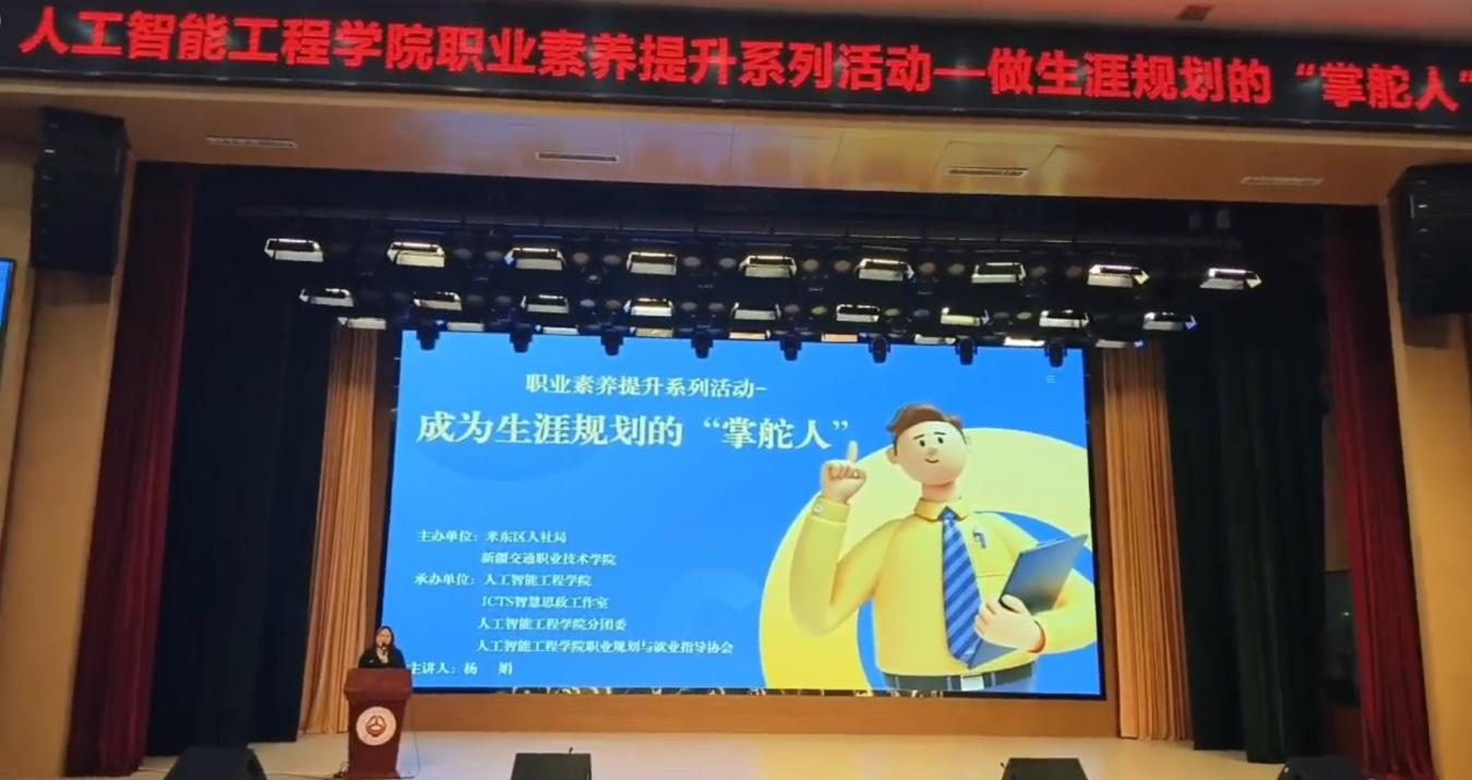 为帮助学生树立正确的职业观念,提升职业素养,明确未来发展方向,ICTS智慧思政工作室联合米东区人社局于3月26日在产教融合楼大礼堂举办成为生涯规划的“掌舵人”职业素养提升系列活动。此次活动以“认识自己、认识专业、就业去向”三大板块为核心内容,吸引了众多学生踊跃参与,取得了良好的效果。