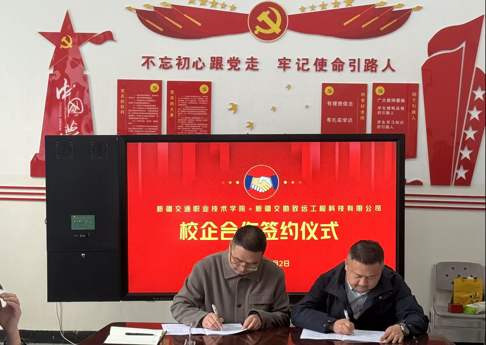 签约仪式上,曹永鹏介绍了新疆交通职业技术学院发展历程及道路桥梁工程学院专业设置、师资队伍、教学条件、科研与社会服务等情况。他表示,学院始终秉持“立足新疆、根植交通、服务社会”办学理念,愿与交勘致远工程科技有限公司在人员互兼互聘、设施设备共享、教材建设、课题研究、成果转化、学生实习和就业机会等方面开展更加深入的合作。