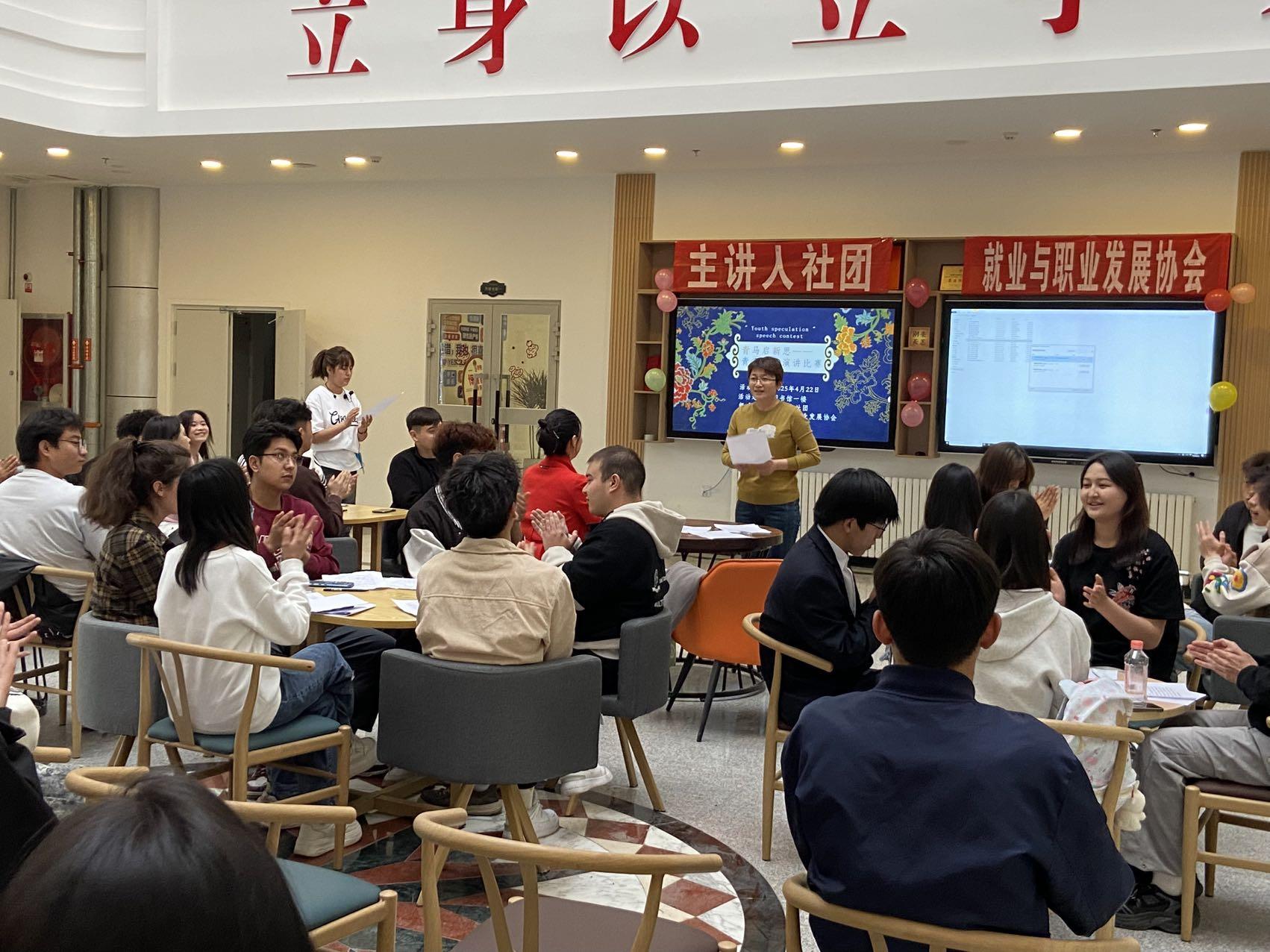 4月22日,由主讲人社团和就业与职业发展协会共同主办的“青马启新思——青春思辨演讲比赛”在图书馆大厅火热开讲。演讲比赛以“责任与担当·科技改变生活”为主题,旨在激发青年学子的社会责任意识与创新精神。
