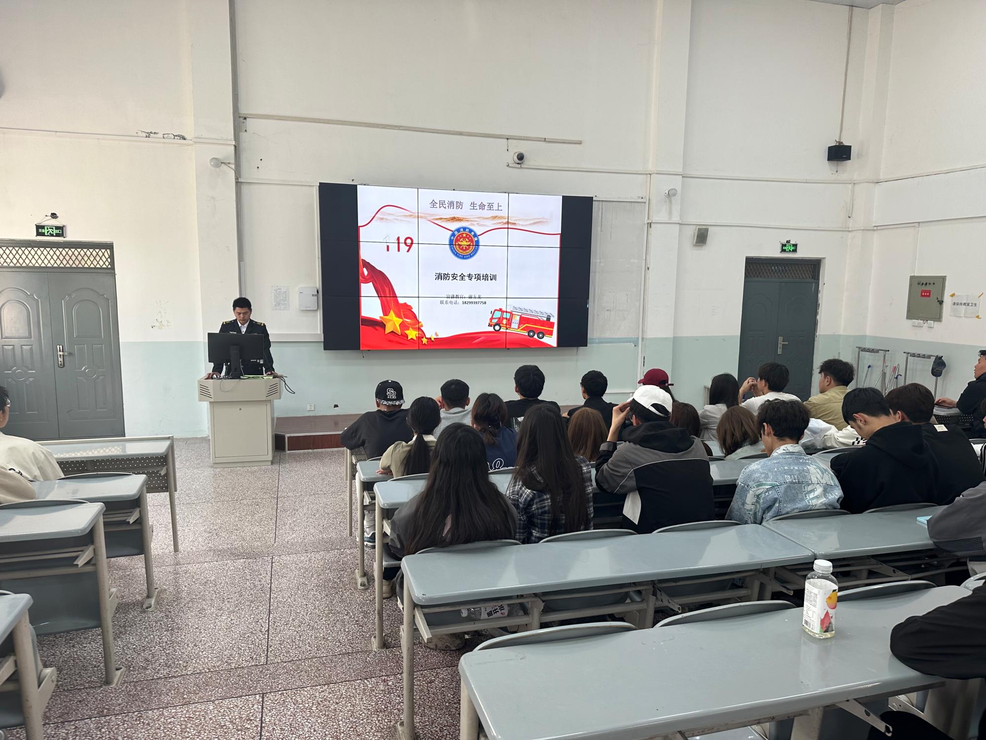 讲座特邀乌鲁木齐消安消防知识宣传中心谢五龙教官担任主讲。结合高校实验室、办公室、车辆实训车间等场所特点,谢教官通过真实火灾案例视频,剖析电动车自燃、电路老化、实验设备操作不当等常见隐患,重点讲解“初期火灾扑救”“消防器材使用”“疏散逃生技巧”三大核心内容,并现场演示灭火器“提、拔、握、压”操作规范。