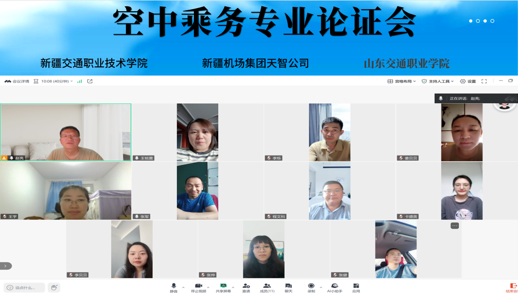 在论证环节,空中乘务专业负责人围绕培养目标、课程设置、教学方法、实践教学体系等方面,对现行人才培养方案进行了全面汇报。与会专家认真听取汇报后,结合当前民航业发展趋势和企业用人需求,展开了深入研讨。新疆机场集团天智公司咨询管理部负责人张健指出,随着民航业服务品质的提升,企业对乘务人员的沟通能力、应急处理能力要求越来越高,建议在课程中增加跨文化交际、航空安全等课程的比重,以提高学生的实际操作能力和应变能力。山东交通职业学院乘务教研室主任李烁则从学科发展角度提出,应注重学生职业素养的培养,将职业道德、团队协作等内容融入日常教学。山东交通职业学院空中乘务专业负责人姜贝贝指出优化安全管理类课程,避免课程内容重复,提高教学效率。