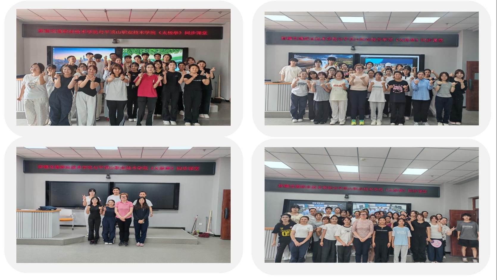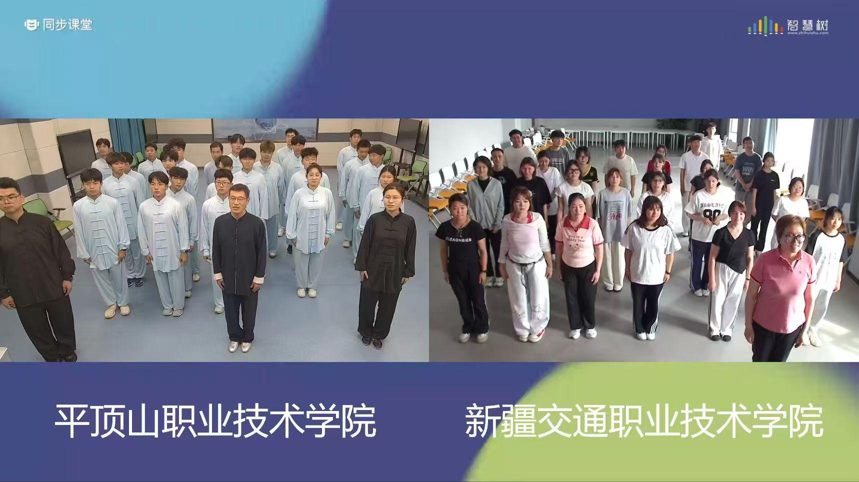 6月18日,学院与河南平顶山职业技术学院通过智慧树平台,以“太极拳与健身”为主题展开本学期《太极拳》的第四次同步课堂。这场跨越三千公里的联动育人,以“线上同频授课+线下实时互动”的创新模式,让丝路文化与中原文明在武学文化中生根发芽,开枝散叶。