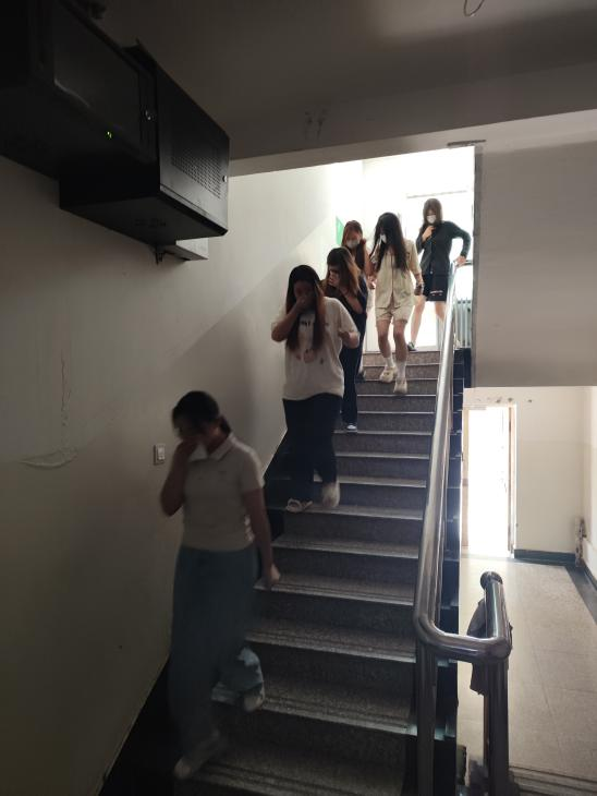 下午两点四十分,模拟公寓三楼东侧电器短路引发“火情”,警报响起,电源切断。在总指挥统一调度下,各楼层引导员迅速组织学生用湿毛巾捂住口鼻,严格遵循“东侧宿舍走东梯、西侧宿舍走西梯”的疏散路线,弯腰低姿沿墙有序撤离。楼梯安全员全程管控秩序,此前接受过指导的学生干部也在疏散中积极发挥作用,协助维持秩序并关照同学。学院还特别安排专人协助行动不便学生撤离。约60秒后,该5层公寓楼内全体住宿学生及工作人员均安全撤离至指定集合点,辅导员迅速完成人员清点上报,过程高效有序。