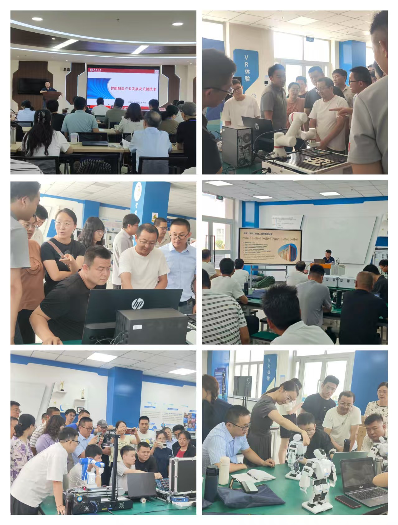 五天的研修日程紧凑而富有成效。研修内容紧贴时代脉搏,聚焦前沿科技,系统涵盖了“智能制造产业发展及关键技术”“人工智能人才培养与科研创新”“具身人形机器人操作与编程”“AI大模型训练及多模态交互”“人工智能机器人视觉”“协作机器人物料搬运与分拣”“智能复合机器人视觉识别与搬运综合实训”等前沿且实用的关键领域。研修方式上,采取了专家授课、案例分析、专题研讨、技能实战等相结合的多元模式,为学员们构建了一个高起点、多层次、强互动的学习交流平台。