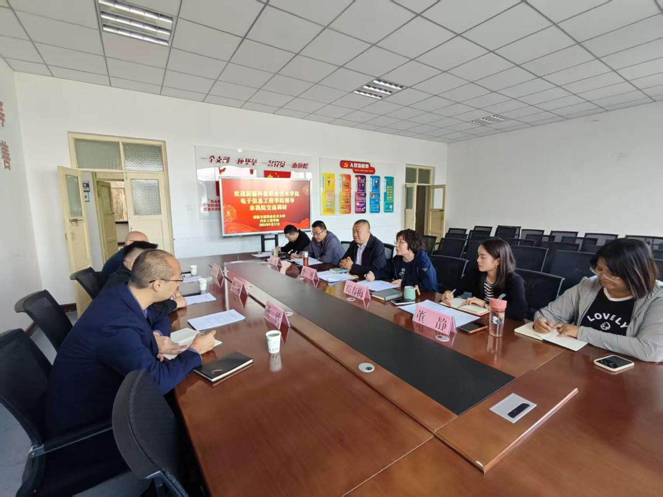 9月17日,新疆科信职业技术学院电子信息工程学院李刚院长、董欣副院长一行3人到汽车工程学院调研交流。汽车工程学院党总支书记李刚主持会议,汽车工程学院院长苟春梅等人参加会议。