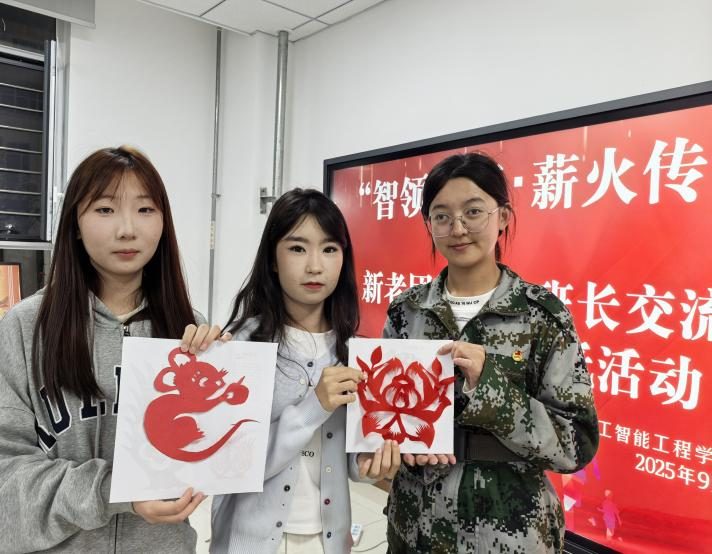 9月 25日,人工智能工程学院分团委在人工智能楼115办公室开展“智领青春・薪火传承” 新老团支书交流暨传统文化剪纸活动。学院各班级团支书齐聚一堂,共话团务工作,共赏传统技艺,现场氛围热烈而温馨。