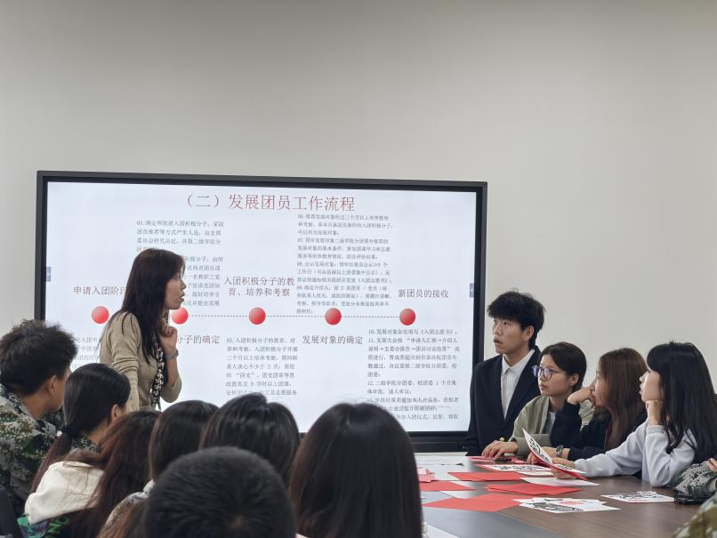 活动伊始,团支书代表网络D242班刘龙霄作为优秀团支书代表,结合自身工作经历,从班级团组织活动策划、日常团务管理等多个方面分享经验。随后,祖鲁呼玛老师围绕入团工作流程展开详细讲解。从入团申请的提交要求、团员发展对象的确定标准、入团积极分子的培养考察,到入团仪式的筹备与组织等各个环节,进行了系统且细致的梳理。