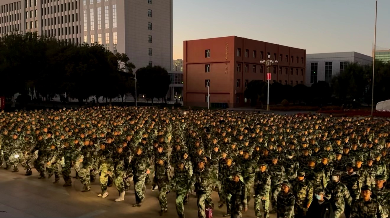 “接下来,让我们跟着音乐,动起来!”在主持人的号召下,最令人期待的集体跳操环节点燃了全场的热情。同学们在教官们的带领下,伴随着《拍拍操》等充满活力的旋律,伸展肢体,跳跃舞动。