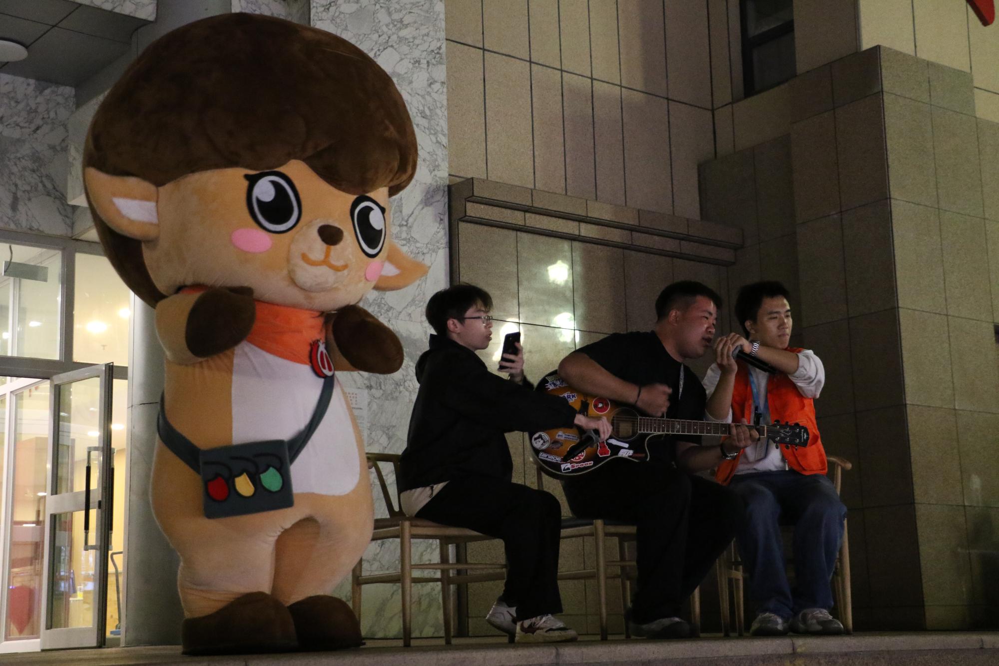 跳操环节过后,大二学长乌拉尔·西力汗走上舞台。在学长的感染和带动下,全场同学纷纷打开手机闪光灯,随着旋律轻轻摇晃,汇成一片璀璨的“星海”。大家从最初的倾听,到小声跟唱,最后变成了气势恢宏的大合唱。活动接近尾声,当大家还沉浸在温馨的氛围中时,一段熟悉而庄严的旋律《我爱你中国》缓缓响起,在领唱的带领下,全体师生不约而同地肃立,用最嘹亮、最真挚的歌声,共同唱响对祖国母亲的深情告白。