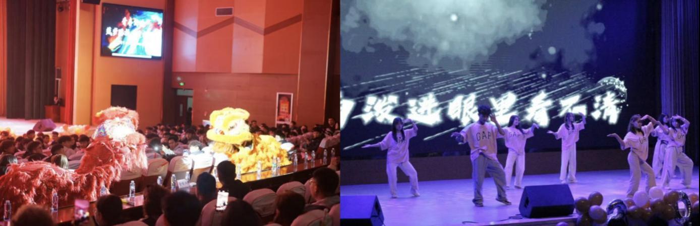 晚会在传统民俗艺术“舞狮”的喜庆气氛中正式开场,随后的舞蹈《无惧前行》激情四溢,尽显现代青年的风采与活力,《Always Online》《无名之辈》等歌曲深情动人,引发在场师生的共鸣;舞蹈《石榴籽的约定》以优美的舞姿展现民族风情,而街舞《XAZ》则活力四射,点燃了现场的欢呼声;说唱《罗生门》与朗诵《逐光》分别以节奏与文字传递力量,冬不拉演奏《琴颂祖国》音韵悠扬,歌曲串烧《节奏派对》旋律欢快,情景剧《光影青春》更是真挚动人、创意满满,将晚会推至高潮。