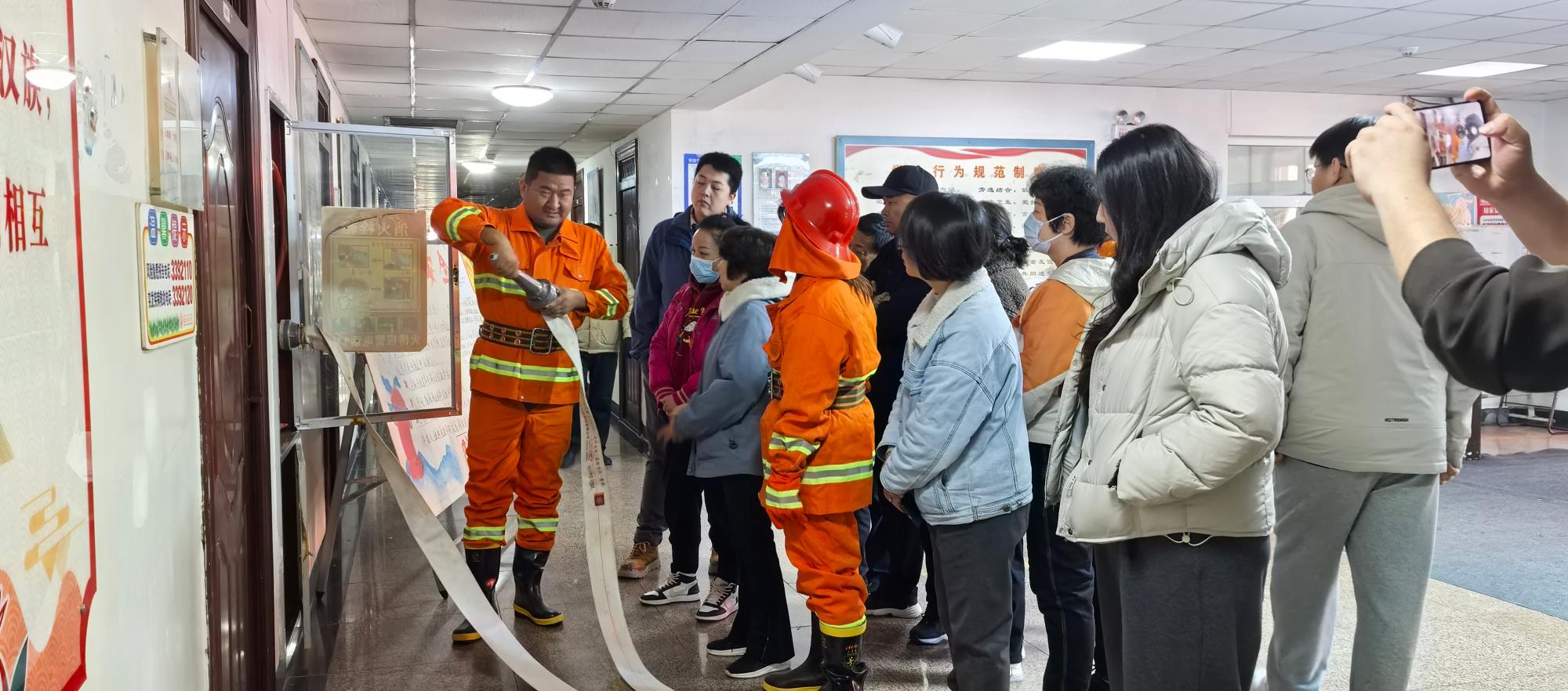 理论培训后,全体人员转入实操演练环节。主讲人现场演示干粉灭火器“提握压拔”操作步骤、灭火毯覆盖火源技巧、消防水带快速连接与喷射方法,强调“距离把控、风向判断、喷射角度”等关键操作要点。参训人员逐一进行模拟灭火实操,在指导下完成从器材检查到火情处置的全流程演练,有效提升了初期火灾扑救的反应速度与操作规范性。