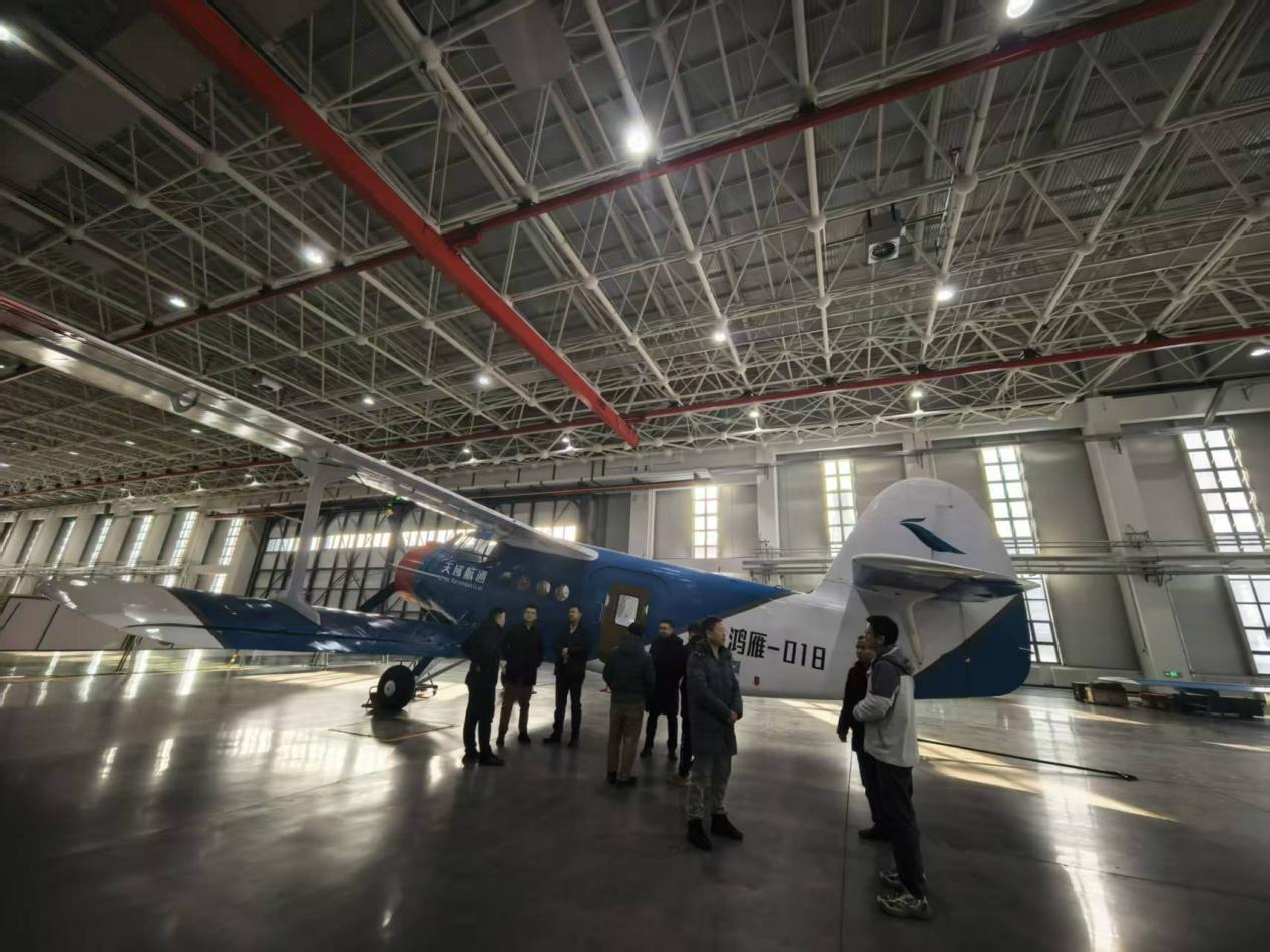调研团队首先参观了天域航通位于石河子市通航装备制造产业园的生产基地。作为国内唯一集研发、生产、销售、运营、服务于一体的高科技创新型通航企业,天域航通重点展示了其核心产品——鸿雁(HY100)大型无人机。校企双方围绕校企合作、专业建设、企业岗位需求展开深度交流。