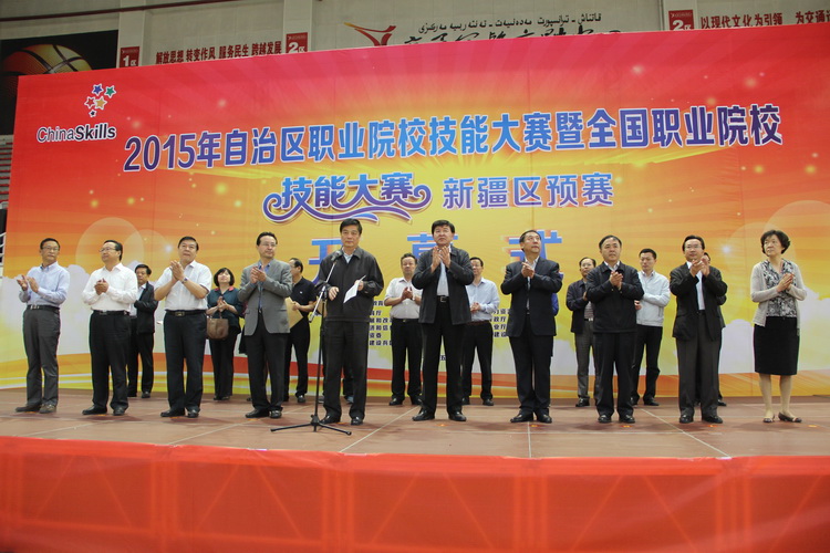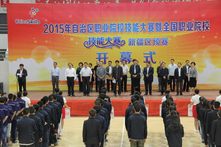 5月16日上午,2015年自治区职业院校技能大赛暨全国职业院校技能大赛新疆赛区预赛开幕式在我院隆重举行。自治区人民政府副主席马敖·赛依提哈木扎出席并宣布比赛开幕,兵团党委常委、副政委卢晓峰主持开幕式。自治区发展和改革委员会、自治区教育厅、自治区人力资源和社会保障厅、自治区财政厅等部门领导、各赛项裁判、代表队领队、选手、指导教师和新闻媒体共1000余人参加了开幕式。