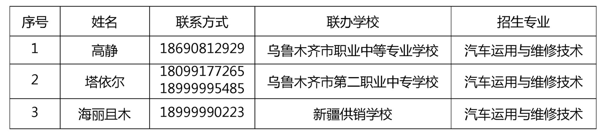 学院与乌鲁木齐市职业中等专业学校、乌鲁木齐市第二职业中专学校和新疆供销学校联合开展汽车运用与维修技术专业五年一贯制(3+2模式)人才培养。前三年在联办中职学校就读中职,学业合格后转段,后两年在我院就读高职,学业合格者由我院颁发高等职业专科毕业证。