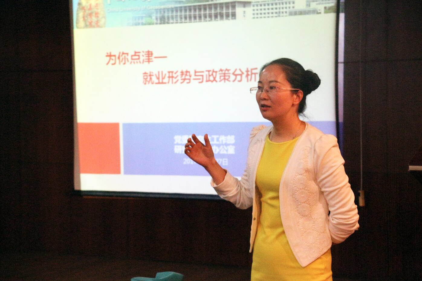 陈慧副部长从毕业生就业形势、毕业前准备、就业政策解读及就业指导资源的获取等四个方面为毕业生同学进行了讲解和指导。她分析了德赢官网研究生就业的基本情况以及近年来就业市场的变化,解读了中央、地方以及学校各项就业、创业政策,尤其对理工科女生的就业情况进行了具体而又细致地分析,并针对女生就业难的问题提出了几点建议。随后,陈慧副部长就生源信息核对、协议书签订、户口迁移等事项进行说明,提醒毕业生同学尽早准备相关材料,并建议同学们积极了解企业招聘特点,提高就业竞争力。她希望毕业生们摆正就业心态,合理安排求职时间,全面地了解和认识自己,转变就业观念,树立正确的择业观,尤其要关注重要领域、重点行业。