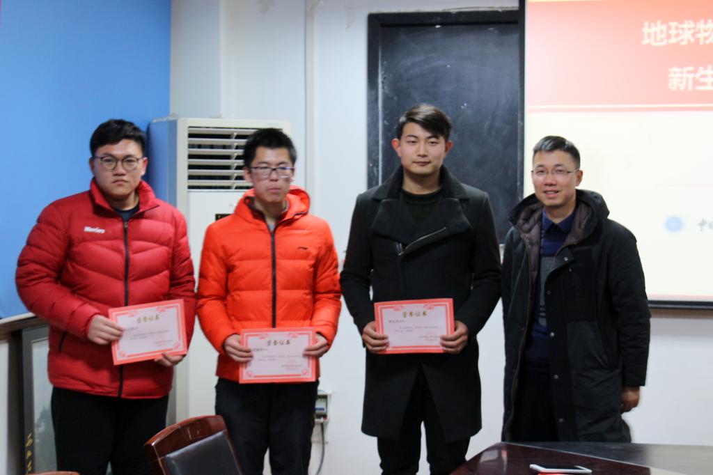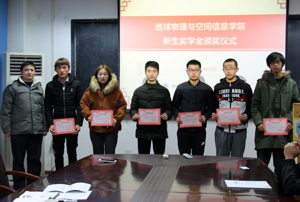 (通讯员张川  摄影祁阳阳)2018年1月5日下午,德赢官网在物探楼214召开2017级新生入学奖学金颁奖仪式。武汉中仪物联技术股份有限公司董事长郑洪标、学院党委副书记李周波,辅导员张川、祁阳阳,2017级各班班长、团支书以及10名获奖新生参会。