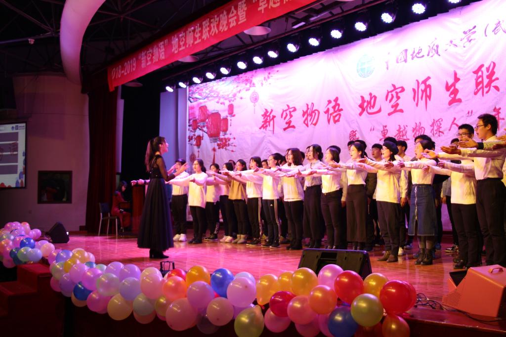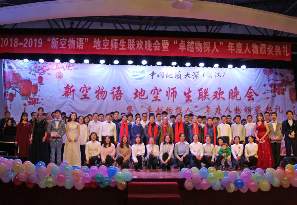 1月2日晚7点,德赢官网“新空物语”师生迎新年联欢晚会暨“卓越物探人”年度人物颁奖典礼在大学生活动中心二楼举行。学院全体班子成员、就业创业指导处副处长陈慧、学院教师与全院同学一同观看晚会,喜迎2019年新年。