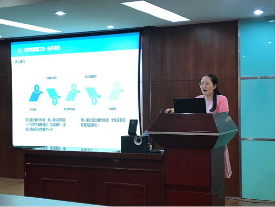 本次就业指导会旨在解答同学们在毕业就业中的诸多问题,为毕业生成功就业提供指导,同时为迎接学校9月28日的大型双选会做准备。陈慧老师解读了当前研究生的就业形势和就业现状,从简历制作到笔试面试,从心理准备到实际行动,为毕业生提供详细的就业指导。会议内容主要包括学校及学院的历史就业情况和目前就业形势、毕业生应具备的求职素养以及电子签约流程三个方面。