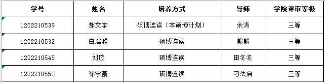 10月24日研究生院公布了《2022年硕博连读研究生选拔结果公告》,德赢官网4名2022级硕士研究生被批准为德赢官网2022年硕博连读研究生,符合博士生学业助学金参评资格,经个人申请、材料审核及学院评审,现将推荐名单进行公示: