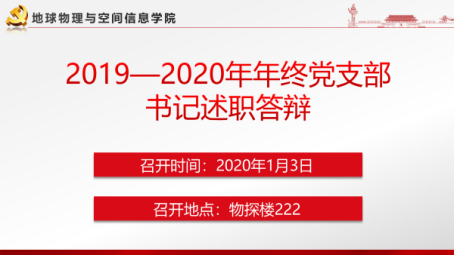2020年1月3日,德赢官网于物探楼222报告厅成功召开2019年度基层党支部书记抓基层党建述职评议考核会议,学院全体学生党支部书记及学生党建工作办公室学生干部参加此次会议。