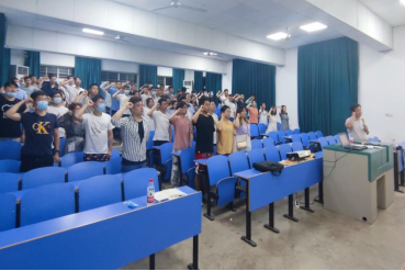 课程最后,在刘书记的带领下,全体毕业生党员再次举起右手,握紧拳头庄严宣誓,重温入党初心。