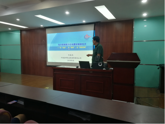 刘春成院长首先介绍了在海洋资料采集中,鬼波产生的原因及特征,并分析了其危害;其次,他介绍了地震波场照明分析与海上采集设计;随后,针对宽频宽方位采集,为压制鬼波,他介绍了“犁式”拖缆采集新技术,并说明了宽频宽方位采集资料在实际处理中的应用效果;最后,他总结了宽频宽方位采集处理新技术的处理剖面在波阻抗反演及储层预测等中的运用,并简单介绍了目前所做工作的新技术方法。