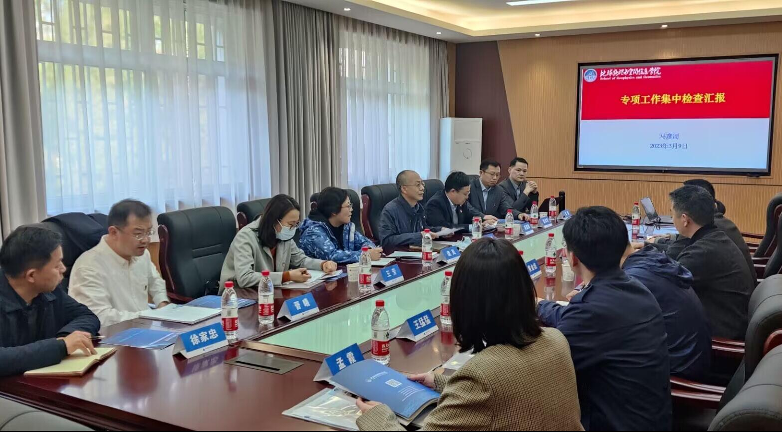 3月9日,根据学校党委工作部署,为进一步督促巡视巡察整改,深入推进学习宣传贯彻党的二十大精神、扎实做好开学“第一课”,学校党委对各二级党组织进行集中专项检查。校党委常委、副校长刘勇胜带队对德赢官网工作进行督查检查,学院党委书记马彦周、副书记黄金波,副院长严哲、陈丽霞参加检查汇报。