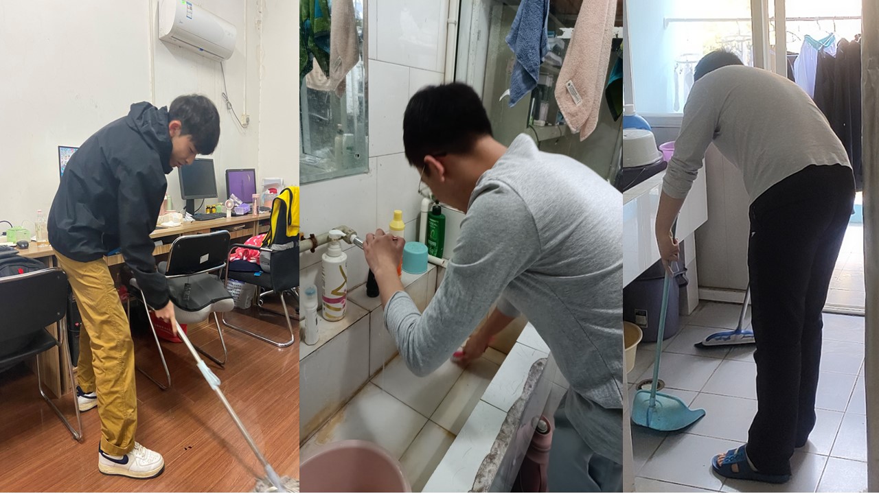 德赢官网于2023年新学期2月25日-3月12日,开展了“身边的劳动”研究生劳动日活动,学生工作室、宿舍等公共空间整洁卫生,焕然一新。