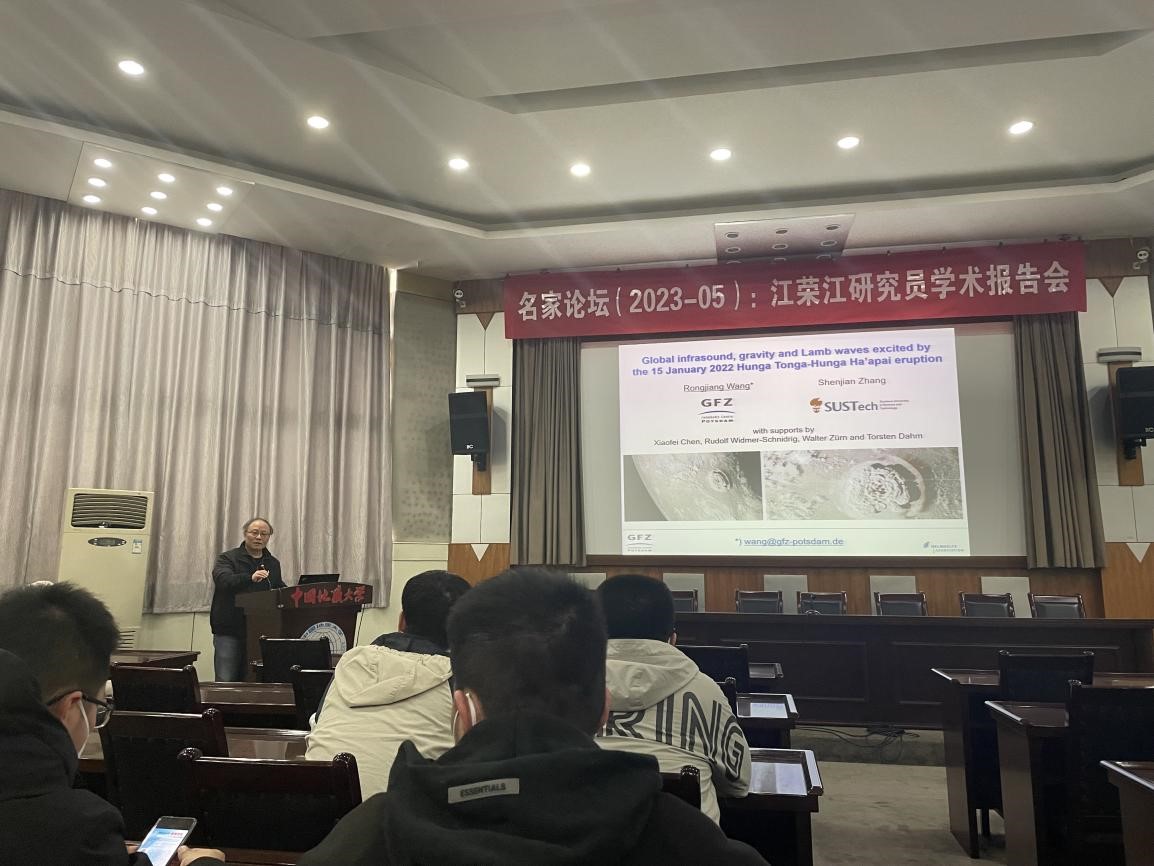 (通讯员 郑勇)应德赢Vwin官方区域合作伙伴“名家论坛”和德赢Vwin官方区域合作伙伴熊熊教授、胡祥云教授邀请,德国地学中心(GFZ)资深研究员国际著名地球物理学家汪荣江教授于2023年3月17日来校访问,在地质大学东区八角楼学术报告厅以“2022年1月15日汤加火山爆发引起的全球大气次声波、重力波和Lamb波”为题做了精彩的学术报告。