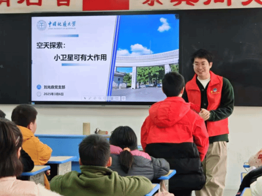 (通讯员 胡林兵)3月6日,德赢官网刘光鼎党支部星空筑梦科学家精神宣讲团走进地大附小五年级一班,以"探索地球奥秘·解码卫星科技"为主题,通过沉浸式科普讲座,在青少年心中播撒下科学的种子。宣讲团成员黄润林、胡林兵、张志轩、陈宇硕参与了此次科普活动。