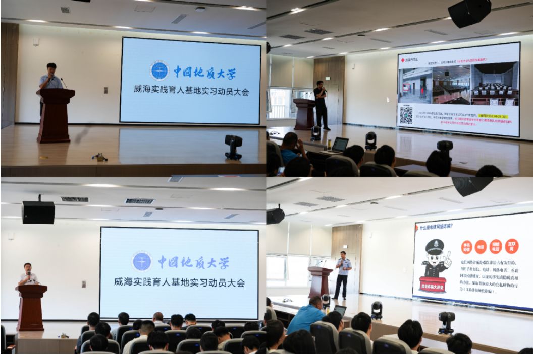 袁云啸详细介绍了园区的住宿安排、餐饮服务、教学场所分布等基本情况,重点说明了园区作息时间、门禁管理、访客登记等日常管理规定,并提醒师生注意爱护公共设施,维护园区环境。张珍重点开展了防诈骗安全教育,详细介绍了当前针对大学生群体的常见诈骗手段,强调了宿舍安全、财物保管、外出安全等日常安全防范事项。彭冠军强调了实习期间的安全纪律要求,要求全体师生必须严格遵守实习纪律,服从统一管理,不得擅自行动,要求各级带队教师切实履行安全管理责任,时刻绷紧安全这根弦。