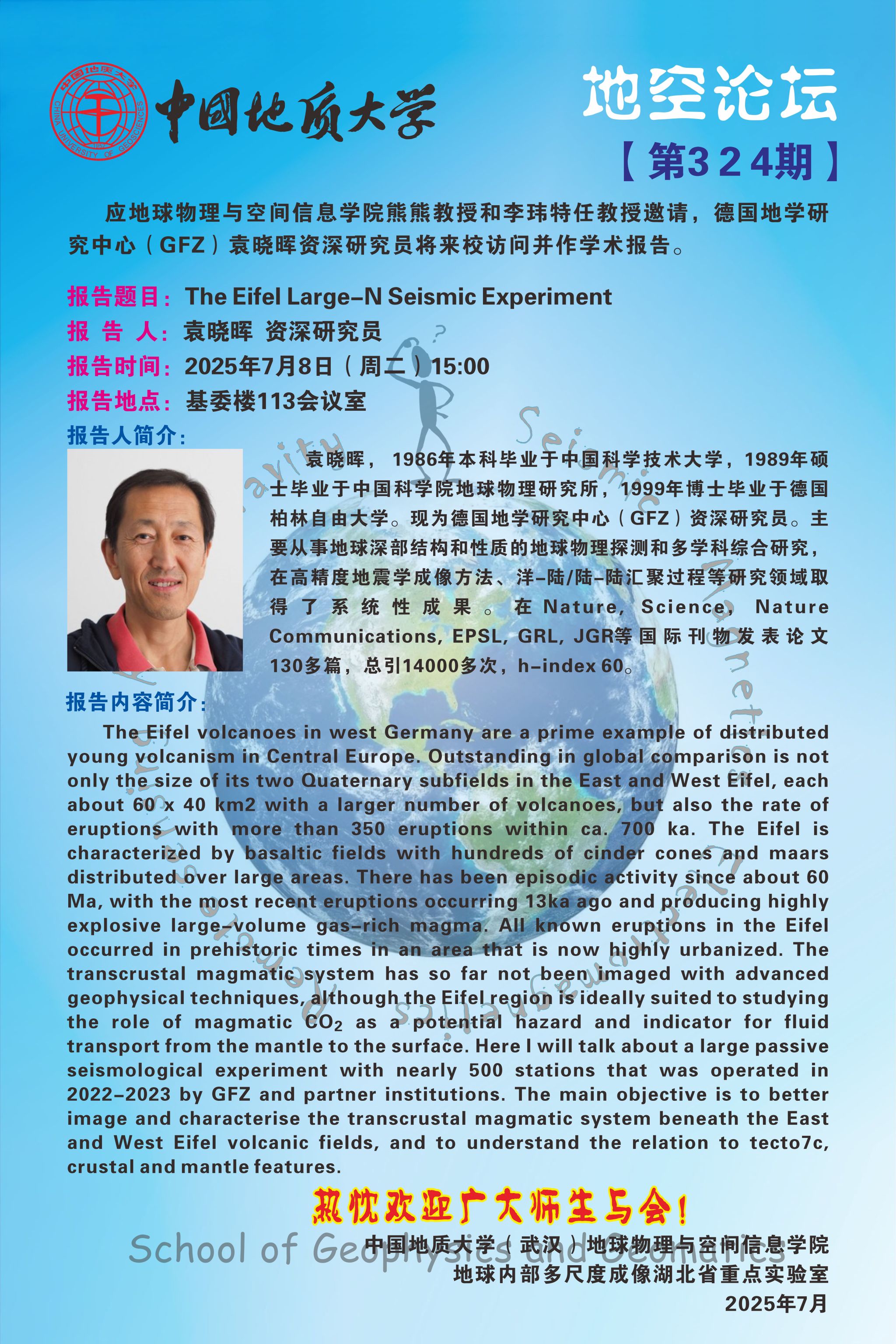地空论坛【第324期】德国地学研究中心(GFZ) 袁晓晖 资深研究员