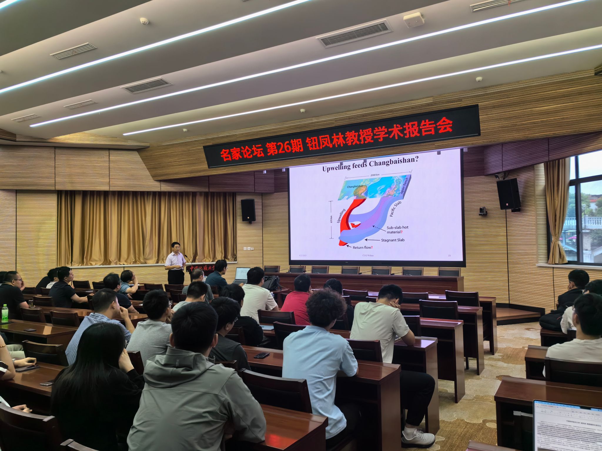 (通讯员 杨小舟)9月23日下午,应德赢官网熊熊院长邀请,中国科学技术大学钮凤林教授来校访问,并在八角楼学术报告厅做了“东亚波形层析成像:东北亚下方由板块撕裂引发的火山活动与西藏地区岩石圈沉陷”的学术报告,全校60多位师生到场聆听讲座。