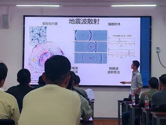 报告中,庞冠宁教授首先介绍了地震波数据在探测地下结构中的重要作用,指出由地下结构异常引发的散射波对结构变化尤为敏感,这为利用散射波实现地球内部结构的高精度成像提供了有力支撑。随后,他详细介绍了基于地震内核PKiKP震相散射波构建的地球内核小尺度异常体全球三维模型,并结合动力学模拟,对地球内核的凝结与生长过程进行了约束。最后,庞教授分享了其在美国Cascades火山弧开展的相关研究工作,通过对火山区域散射波场的精细分析,并结合全波形正演技术,成功探测了火山地下岩浆房的位置与规模。