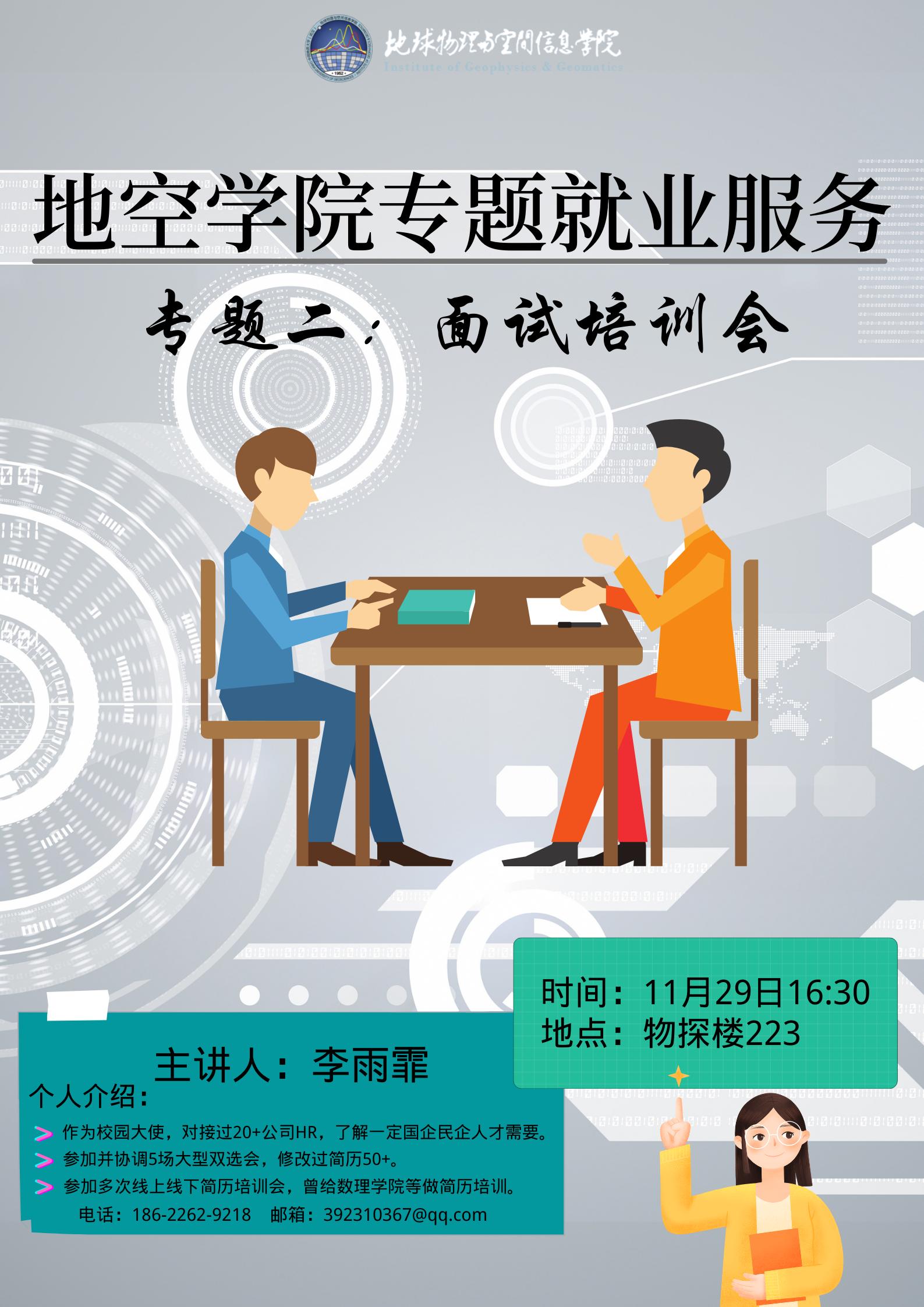 2021年11月29日下午16:00,德赢Vwin官方区域合作伙伴专题面试技巧就业服务第于物探楼223顺利进行。本次就业服务邀请到了就业办讲师团的李雨霏同学,李雨霏同学对接过多个公司HR,对各企业人才需求有一定了解,多次参加各学院就业服务工作,经验丰富,能力突出。