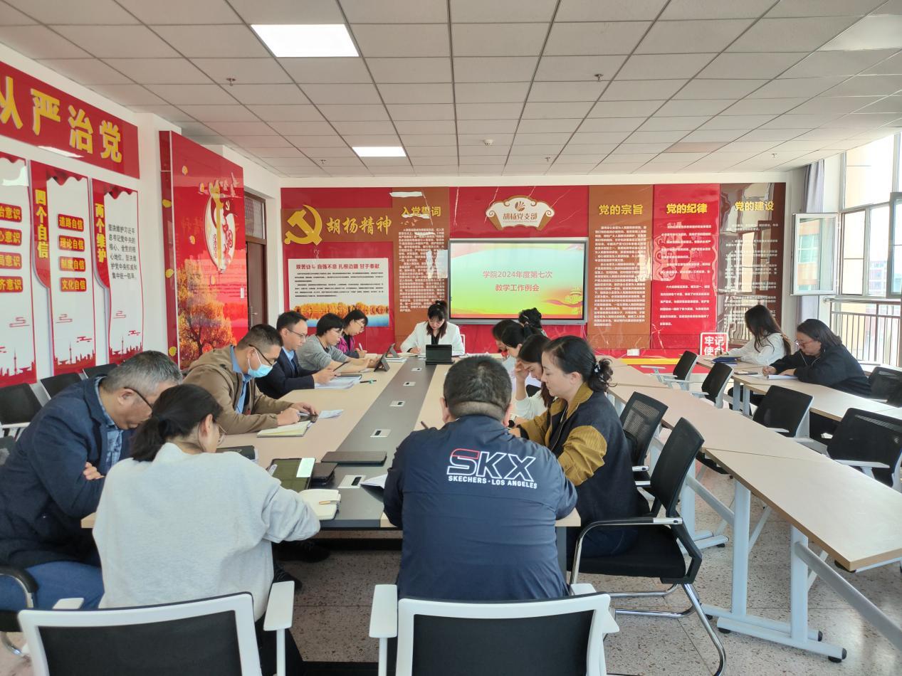 会上,教务处负责人对学院2024-2025学年第一学期3-4周教学督导情况、期初教学检查情况、2024年精品在线开放课程录制进度及专业群调整情况进行了详细说明。各二级学院对近期教学工作进行研讨与交流。